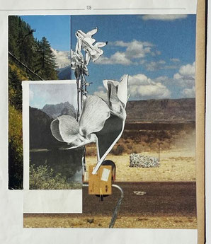 In der Ausstellung zeigt Eva Tausch unter dem Titel „Was wiegen die Wolken?“ Collagen,